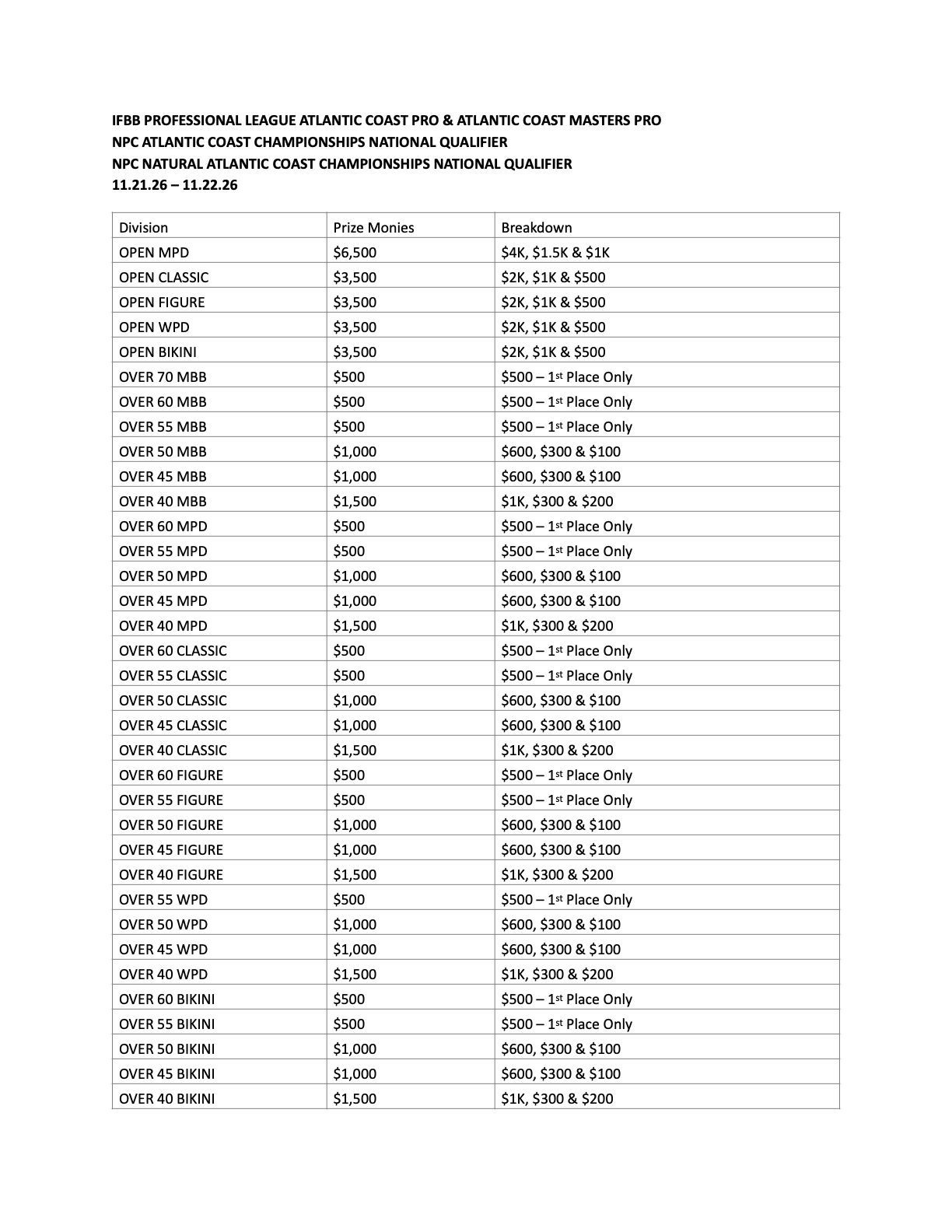 Backstage passes are sold at athlete check-ins with proof of valid NPC card.